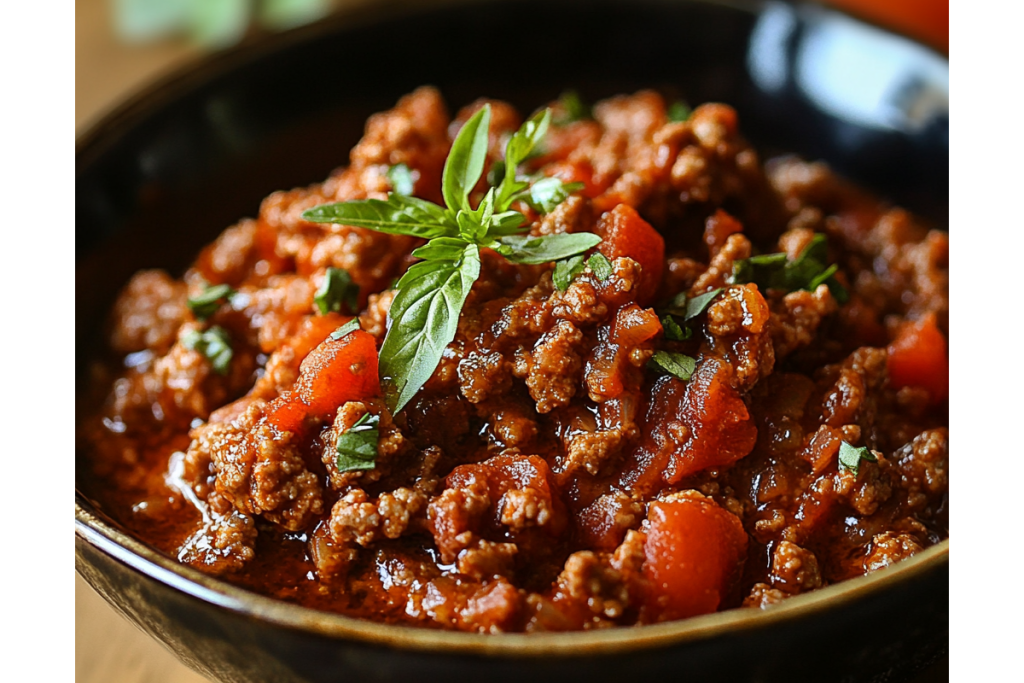 Close-up of a tempting spaghetti Bolognese dish topped with fresh parsley, perfect for Italian cuisine lovers.
